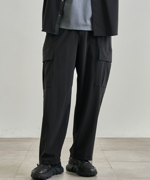 ◆素材・透け感 なし・裏地 なし・伸縮性 あり トリコット編み機で編まれており主にスポーツウェアなどで使用される高機能素材。編み物なのでジャージの様にストレッチ性があり、糸がループ状になっている為通気性もあります。そして形態安定性もあるのでシワにもなりにくく、薄くて軽い素材です。また、撥水加工も施しているので急な雨にも心配要りません。