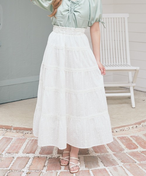 生地をたっぷり使った軽やかでボリューミーなスカート。動きに合わせて軽やかに揺れる夏に欠かせない一枚です。 シンプルで着回しのきくアイテムだからこそのコットンレースで切り替えたティアードデザインや、ティアードの幅にもこだわった一枚です。 一周ぐるりゴム仕様です。 【素材】 やわらかい綿レース素材を使用しております。 【お手入れ方法】 手洗いがおすすめです。 透け:なし 厚さ:普通 光沢:なし 伸縮:なし 裏地:あり ポケット:なし ※モデル着用画像は、光の当たり具合で色味が違って見える場合がございます。 ※お使いのモニター環境によって商品の色味が違って見える場合がございます。 ▼ 気になった商品はお気に入り登録がおすすめ ▼ 商品ページ内の ♡ ハートマークをクリックしてお気に入り登録しておけば、 他アイテムとの比較やお値下げのチェックも楽に行えます! ぜひ、お買い物する際にご活用下さい。