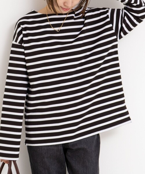 ◇25AW◇Rie Miller◆Point・Rie Miller定番人気のボーダーカットソーがリニューアル!・コットン天竺素材を使用したビッグマリンボーダー・片傾斜を大きく付けることにより、少し首周りに浮きが入り、女性らしさを演出・太めの袖もこなれ感があり、大人可愛いポイントに・ジレやベストとのレイヤーコーデにもおすすめ・トレンドに左右されることなく、長く愛用できるアイテム☆カルフォルニアのサンホーキンバレーの雪解け水で育った、非常に貴重な原綿を繊維のダメージが付かないように手間暇かけて糸にしており、綿華そのものの柔らかさと滑らかな表面感が感じられるコットン素材を使用●お取扱い上のご注意●末永くご愛用頂くために、アテンションタグを必ずご確認の上、着用又はお取り扱い下さい。気になる商品は、お気に入り登録がオススメです!クーポン情報、入荷情報が、通知されるようになります。※手洗い可※店頭及び屋外での撮影画像は、光の当たり具合で色味が違って見える場合があります。商品の色味は、スタジオ撮影の画像をご参照下さい。※商品画像に関しては出来る限り忠実に表示出来るよう努めておりますが、お客様がご利用のモニターの設定及び特性により、実際の商品と比較し色味に若干の誤差が生じる場合があります。※画像の商品はサンプルとなりますので実際の商品と仕様、加工、サイズが若干異なる場合がございます。