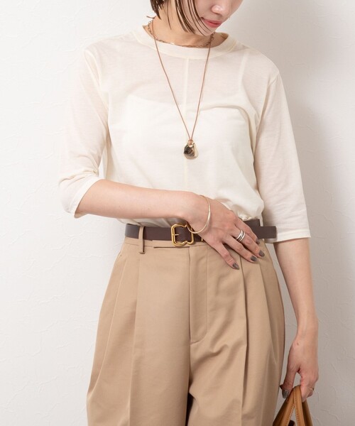 ◇25AW◇2nd NOLLEY'S◆Point・ショート丈、6分袖のバランスが新鮮でおしゃれなプルオーバー・さらりとした風合いとヘルシーな透け感が特徴の素材・ネックとセンターフロント、センターバックに施した振りミシンがさりげないポイントに・ワイドシルエットのボトム合わせがおすすめ・ジャケットのインナーにもおすすめ・シーズンレスで活躍する1枚●お取扱い上のご注意●末永くご愛用頂くために、アテンションタグを必ずご確認の上、着用又はお取り扱い下さい。気になる商品は、お気に入り登録がオススメです!クーポン情報、入荷情報が、通知されるようになります。※手洗い可※店頭及び屋外での撮影画像は、光の当たり具合で色味が違って見える場合があります。商品の色味は、スタジオ撮影の画像をご参照下さい。※商品画像に関しては出来る限り忠実に表示出来るよう努めておりますが、お客様がご利用のモニターの設定及び特性により、実際の商品と比較し色味に若干の誤差が生じる場合があります。※画像の商品はサンプルとなりますので実際の商品と仕様、加工、サイズが若干異なる場合がございます。
