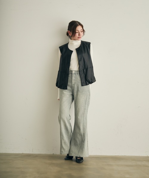 フレアシルエットがおしゃれなダメージデニム 柔らかい素材でストレスがなく普段使いしやすいデニムパンツです。 ダメージ加工がおしゃれでシンプルなアイテムと合わせてもサマになる万能アイテム。 インスタイルやショート丈トップス、ヘソ出しコーデも人と差がつくおしゃれな着こなしに。 【ポイント】 ・シンプルでデイリーコーデに馴染みやすい ・ワイドシルエットとヴィンテージ感のある色味でトレンド感のある着こなしに ・抜け感のあるダメージデザインで1枚でキマる ・柔らかい素材でデイリー使い◎ 【素材】 比較的柔らかく着心地◎ 【スタイリング】 オールシーズンお使いいただける素材で、さまざまな場面で活躍します。 定番のシャツやブラウス、Tシャツなど何でも合わせやすく着回し力抜群。 春夏に特におすすめなアイテムで活躍すること間違いなし! 秋冬はニットやスウェット、カーディガンなどと合わせてもかわいいです! ピンクやイエローなどの色物アイテムが好きな方にもおすすめです。 春夏に季節感のあるコーデをしたい方は絶対に持っておきたいカラーです。 ストリート系や古着、メンズライクなアイテムとも相性抜群です。 大人かわいいフレアシルエットできれいめや大人ムードなスタイリングを楽しみたい方、暗い色のトップスをたくさん着る方にもおすすめです。 足元はカジュアルに着たい方はスニーカー、きれいめに着たい方はミュールやパンプス、フラットシューズ、 より涼しげに着こなしたい方はサンダルや白系のシューズがおすすめです。 厚底サンダル、厚底スニーカーとも相性抜群でスタイルアップ◎ 定番のキレイめコーデ、カジュアルコーデからトレンドの韓国ファッション、スポーツミックス、モード系、ストリート系など幅広いジャンルのコーデと合わせていただけます。 ルネア Lunéa lunea レディース 綺麗め きれいめ キレイめカジュアル カジュアルコーデ 大人 大人ファッション 韓国 ノームコアモード オフィスカジュアル ベーシック シンプル ママ 大人可愛い 大人かわいい 淡色 茶色 ベージュ 黒 白 着回し ゆったり オーバーサイズ ボーイッシュ 古着 ブルー 水色 ウォッシュ モノトーン 韓国ストリート Y2K カーブデニム 体型カバー ストレートパンツ ワイドパンツ リネンパンツ ハイウエストデニム ※お使いのモニター設定、お部屋の照明等により実際の商品と色味が異なる場合がございます。 ▼もっとお買い物を楽しんで頂く為に▼ 〈商品のお気に入り登録〉 お気に入りの登録をしていただくと、セールの通知・ラスト1点通知、再入荷通知を受け取ることができます。 〈ブランドのお気に入り登録〉 新商品の発売や再入荷、タイムセールやクーポン発行のお知らせなどLunéaのお得な情報を受け取ることができます。 ※他のキャンペーンにより、期間中に価格が変動する場合があります。※セールは予告なく終了させていただく場合もあります。
