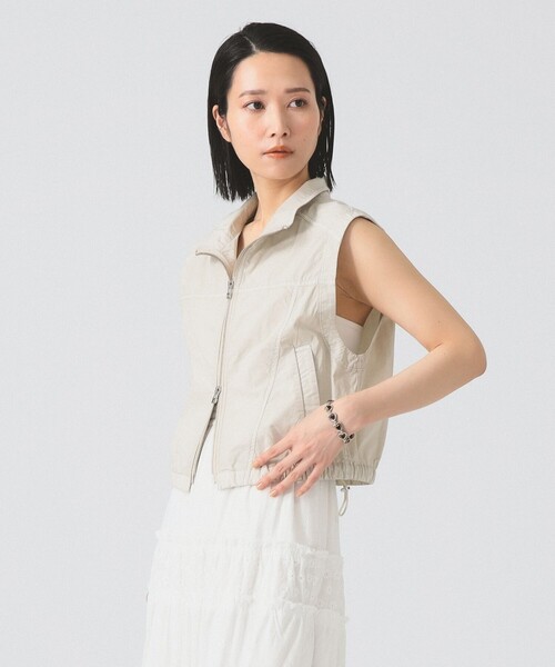 洗練されたレトロな着こなし■デザイン顔料染めでヴィンテージライクな雰囲気に仕上げたコットンブロード素材のベスト。 フロントはダブルジップになっており、上下どちらからも開閉できるため、インナーを見せたり、抜け感を演出したりと、その日の気分やスタイルに合わせて様々な着こなしが楽しめます。■コーディネートTシャツや薄手のインナーの上に羽織るだけで、気軽に秋のスタイリングを取り入れられます。■サイズ裾にはドローコードを採用。キュッと絞って丸みのあるシルエットにしたり、ゆったりと着こなしたりと、お好みのシルエットに調整して着用いただけます。■素材軽やかな着心地。■ケア方法手洗い可(詳細は商品についている品質表示ラベルをご覧ください)【BEIGE】Model:H165 B77 W57 H85 Size:ONE SIZE【BROWN】Model:H170 B78 W57 H88 Size:ONE SIZE※光の当たり具合やパソコンなどの閲覧環境によって、実際の色味と異なって見える場合がございます。予めご了承ください。※商品の色味は商品単体で撮影した画像をご参照ください。