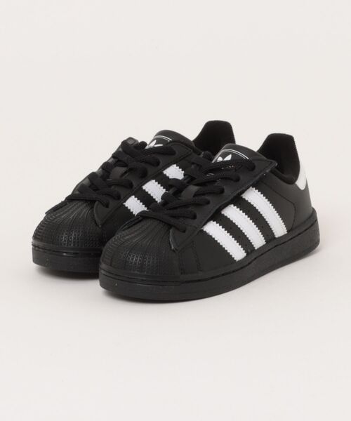 1969年にバスケットボールコートでデビューを果たしたアディダス スーパースター。その後、コンサートのステージ、ファッションショーのランウェイ、さらにスターたちの日常の足元を飾り、カルチャーの最前線に立ち続けてきた。このキッズ向けバージョンは、ラバーのシェルトゥやギザギザのスリーストライプスなど、オリジナルを有名にしたディテールをすべて取り入れている。伸縮性のあるシューレースに面ファスナー式のストラップを合わせ、着脱しやすく仕上げている。※天然皮革を使用しているため、多少の色ムラや生産過程で生じる傷が多少ある場合がございますので、予めご了承ください。