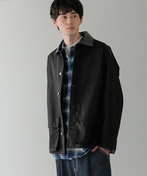 ■素材 CVCの糸使いで高密度に織り上げたツイル生地に微起毛をかけて、適度なハリ感と滑らかな風合いが特徴の素材です。 ■デザイン フィールドジャケットをベースにしたブルゾンです。 フロントのユーティリティーポケットや背中部分のアクションプリーツを採用し、衿はカラー毎に異素材を使用しており、今年らしいデザインに仕上げています。 ミドル丈なので全体的にまとまりのあるシルエットになっています。