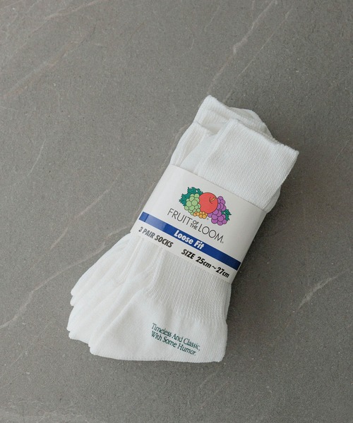 ■デザインFRUIT OF THE LOOMとの別注アイテム。定番のDadSocksの形にLFM(U)のコンセプトロゴをプリントデザインした3Pソックス。ローカットシューズと合わせてさりげなく見えるロゴがポイントで、遊び心のあるデザインに仕上げています。ギフトにもオススメです。【FRUIT OF THE LOOM】アメリカ・ケンタッキー州に本拠地を置く170年以上の歴史を持つ世界有数のベーシックアパレル/アンダーウェアメーカー。古くからアメリカ人の日常に溶け込み、人々の生活に欠かせないベーシックな衣料品を作り続け、ブランドのアイコンでもある果実のロゴを知らないアメリカ人はいないと言われている。アンダーウェアや、Tシャツをはじめとするベーシックアパレルラインをベースに、「すべての人にとっての快適なライフスタイルグッズ」をキーワードにした、ジャンルや年齢、そして性別を超えたニュートラルな製品を提案し続けている。※こちらの商品は衛生上の観点から、交換・返品を承ることができません。