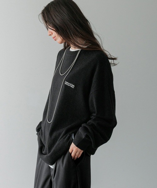 ■素材上品なハイゲージ編みニットで秋口から長く着用できる素材感です。ウール混なので暖かみがあり冬場もインナーとしてお使いいただけます。■デザインロングシーズン使えるハイゲージニットクルーネックプルオーバー。シンプルなデザインにコンセプトロゴを刺繍して程よいアクセントをプラス。一枚着としても冬はアウターのインナーとしても使いやすい一枚です。