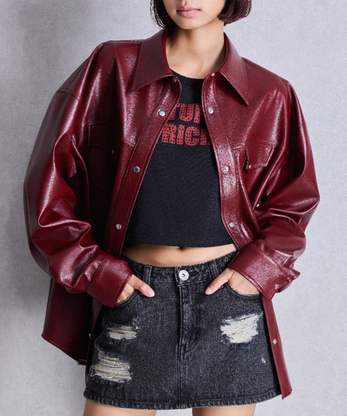 柔らかいフェイクレザーで羽織りやすさ◎■商品コメント トレンド感あるフェイクレザー生地を使用した、デイリー使いしやすいシャツです。 シンプルなデザインながらバックロングでチュニック丈でも着用可能。 胸ポケットデザインで目線を上に持って行くことによってスタイルアップ効果。 ■コーデ 厚すぎない柔らかい生地なのでベルトを締めるたりアウターの中に着ても◎ 羽織としても使用でき様々なスタイリングが可能です。【 お買いものにおすすめの便利機能! 】♥商品のお気に入り登録完売カラーの再入荷時や、ラスト1点の時、セール開始時にお知らせします。♥ブランドのお気に入り登録新商品や再入荷、セール情報など、いち早くブランドのお得な情報を受け取ることができます。ぜひご活用ください! ・・・・・・・・・・・・・・・・・・・・・・ ※着用画像はフラッシュの加減で実際の製品と色味等が異なる場合がございますので、生地のズームアップ画像をご確認ください。 ※ご利用の端末画面の設定により実際の商品と色味が異なる場合がございます。