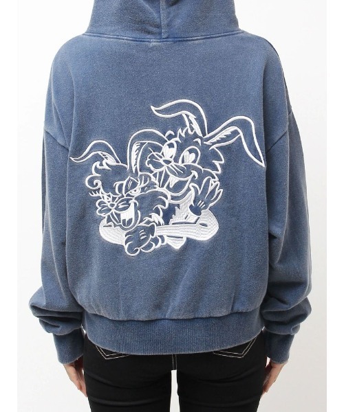 オリジナルのバニー刺繍がかわいい◎■商品コメントGYDAオリジナルキャラクターBUNNY・HONEY BUNNYのペア刺繍が目を惹く、スウェットパーカー。 前身に肌みせダメージ+クロスポイント刺繍入り、 フード部分には「GENUINE」のロゴ刺繍が施され、後ろ姿までしっかりキマるデザインです。 厚すぎず、柔らかいスウェット素材なので、一枚でも重ね着でも楽しめるアイテム。 ストリート感ある主役トップスです。 【意味:ジェニュイン→本物、偽りのない】 ■コーデ甘さをMIXさせたストリートガーリースタイルがおススメです。 足元はボリュームのある厚底シューズで、スタイルアップ効果も抜群。【 お買いものにおすすめの便利機能! 】♥商品のお気に入り登録完売カラーの再入荷時や、ラスト1点の時、セール開始時にお知らせします。♥ブランドのお気に入り登録新商品や再入荷、セール情報など、いち早くブランドのお得な情報を受け取ることができます。ぜひご活用ください!