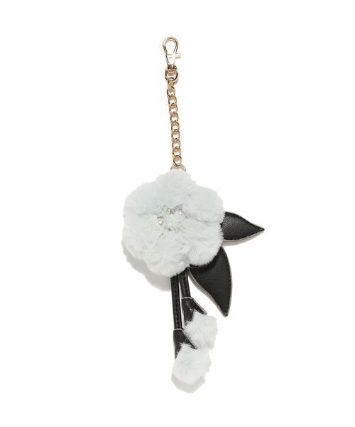 【ふわふわのファーとビジューが可憐に揺れるフラワーファーチャームでアレンジ】【Design/Styling】ふわふわのファーでお作りしたキャッチーなフラワーやつぼみのモチーフに、フェイクレザーの葉っぱや茎を組み合わせてリュクスに仕上げたフラワーファーチャームです。フラワー型のセンターにはビジューやパールビーズを添えてアクセントに。さまざまな太さのバッグハンドルに装着できるように、ゴールドチェーンにセットしました。裏側のフェイクレザーにはSNIDELロゴを型押しして上品に。ギフトにもおすすめ。ホワイト、ピンク、ライトブルーの3色展開です。※照明の関係により、実際よりも色味が違って見える場合があります。またパソコン・スマートフォンなどの環境により、若干製品と画像のカラーが異なる場合もございます。予めご了承ください。商品の色味は、商品単品画像をご参照下さい。 ※商品画像はサンプルのため、色味やサイズ等の仕様に変更がある場合がございますので、予めご了承ください。
