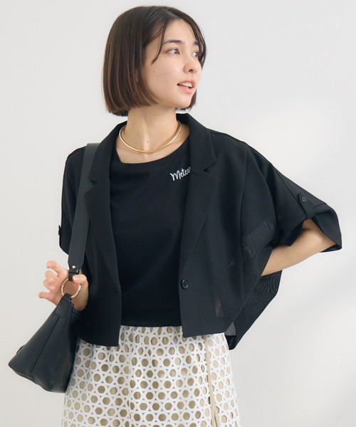 羽織るだけでスタイルアップする、コンパクトジャケット[素材]・シワになりにくく、風が通り抜けるような、清涼感あふれるメッシュ生地を使用。・スポーティーになりすぎない繊細な編み地が、肌を上品に透かし、洗練された抜け感を演出。[デザイン]・すっきりとしたショート丈が、目線を自然と引き上げ、脚を長く見せるスタイルアップ効果を発揮。・袖口をロールアップして内側のタブを表のボタンで留めれば、よりコンパクトで愛らしい袖にアレンジが可能。・裾の両サイドには、デザインのアクセントとなるスリット入り。[スタイリング]・ノースリーブのワンピースにさっと羽織れば、上品な肌見せとスタイルアップが叶う夏のレイヤードスタイルに。・ハイウエストのワイドパンツやテーパードパンツと合わせれば、脚長効果のある洗練されたスタイルが完成。■光沢感:なし■透け感:あり■伸縮性:ややあり■生地の厚さ:薄手---------------------------------------------------【Pillini】「Pillini/ピリーニ」フィンランド語で「私の笛」口笛を吹きながら笑顔で過ごせる…そんな何気ない豊かな毎日を彩るトレンド感のあるきれいめカジュアルウェアーを手に入りやすいプレミアムプライスで提案します。---------------------------------------------------※照明や光の当たり具合で色味が違って見える場合があります。※システムの都合上、店舗より入荷が遅れる場合がございます。<25SS Collection 25Spring&Summer>【お買い物をよりお楽しみいただくために】・商品のお気に入り登録をおすすめします!♡マーククリックで登録できます。完売カラーの再入荷や、ラスト1点になったときの通知、セールの際に通知などお得な情報を受けることができます。・ブランドのお気に入り登録もご一緒にお願いいたします!新商品や再入荷、などいち早くブランドの最新情報をお届けします。