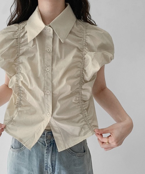 【on:nue】シャーリングボリュームノースリーブブラウス SHIRRING VOLUME SLEEVELESS BLOUSE■Point優美なシャーリングデザイン襟付きなので上品さときちんと感がプラス裾ゴムで快適&着回し力UP涼やかで快適な着心地■Design身頃全体に施されたシャーリングが、そっと体に寄り添いながらも、上品な華やかさを演出してくれるブラウスです。きちんとした襟付きデザインなので、普段使いはもちろん、ちょっとしたお出かけやオフィススタイルにもぴったり。裾の後ろにはゴムが入っているので、フロントはすっきり見せつつ、バックはふんわりと自然なギャザーが生まれ、着心地も楽ちん。薄手の素材で仕立てているので、汗ばむ季節も涼しく快適にお過ごしいただけます。一枚で着映えするのはもちろん、羽織りとしても使えてバランスが取りやすいのが魅力です。■Stylingテーパードパンツやタイトスカートと合わせて、清潔感のある上品なオフィススタイルに。デニムやワイドパンツと合わせて、抜け感のある大人カジュアルスタイルに。裾を少し上げてブラウジングすれば、こなれ感も演出できます。足元はパンプスやサンダルで、きちんと感をキープしつつ軽やかにまとめるのがおすすめです。襟付きなので、サロペットやオールインワンのインナーに着るだけで、ぐっと大人っぽい印象に。■Detail透け感:ホワイトややあり伸縮性:なし光沢感:なし生地の厚み:普通ポケット:なし裏地:なし*ご覧のモニター環境や撮影環境に応じて実際商品の色と異なって見える場合がございますので、ご了承下さい。*素材の特性を考慮して管理法留意事項を購入/着用する場合は必ず確認お願いします。※取り扱い上のご注意摩擦や、汗、雨などで濡れた場合は、他の衣類や下着に色移りする可能性がございますので、十分ご注意ください。クリーニングの際は、多少色落ちすることがあります。他の淡色物への色移りを防ぐためにも、単品洗いをして、脱水・乾燥は速やかに行ってください。※当社の製品は、工場で生地を染色する際、同じ釜・同時期に染色されたものは同じ色に仕上がります。釜や染色日が異なる場合、生地の色味に微妙な差が生じることがございます。また、生地の染色においては、基本的に同じ染料を使い、同じ条件で作業を行いますが、染料の配合や、その時の温度、湿度、染色量など、様々な要因により、わずかな色ブレが発生する可能性がございます。そのため、リピート購入や複数点のご購入をご検討されるお客様におかれましては、多少の色味の差が生じる可能性があることをあらかじめご理解いただいた上で、ご購入いただけますようお願い申し上げます。【 on:nue 】「年を重ねてもおしゃれを楽しみたい大人の女性へ、抜け感のある韓国モードをさりげなく取り入れた上質で長く着られる服」 をコンセプトに韓国大人女子コーデが叶うアイテムをお届けするby muni:rの姉妹ブランドです。■商品お気に入り登録[お気に入り登録] を押すと登録完了!お好きなアイテムとサイズのカラーを登録すると再入荷、販売のお知らせ等を受け取れます。■ブランドお気に入り登録新商品/お買い得情報/クーポン等の通知をいち早く受け取れます。ブランドの最新情報はinstagram[@onnue_official]でご確認頂けます。*注文履歴ページよりご注文頂いた商品の配送時間を確認できます。*他のキャンペーンにより、価格が変わる場合があります。