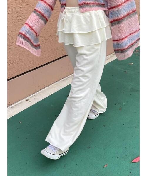 ふんわり重ねたティアードフリルが可愛らしいスウェットパンツ。ボリューム感をプラスすることで気になるお腹や腰周りをさりげなくカバー。ウエストはゴム+ドロスト仕様になっていて穿き心地もノンストレスです。カジュアルスタイルも大人可愛い着こなしに決まるアイテムです。※商品画像は、撮影環境やお客様のご利用のPC・スマートフォンのモニター環境などにより実物と色味に差異がある場合がございます。【その他採寸】F ウエスト:[ゴム仕様]66cm ★《お気に入り登録》でお得な情報をGET★① 商品ページ内のハートマークをクリック!② 以下通知が受け取れます!「再入荷」「ラスト1点」「特別セール」etc..\ブランド、ショップのお気に入りも是非!/
