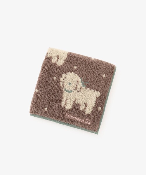 かわいらしい犬のシルエットをデザインしたミニタオルです。 全体にドット柄を組み合わせており、見ているだけで楽しいアイテム。緑のリボンがポイントになったトイプードルをモチーフにしました。生地にはふわふわとした肌ざわりの綿100%素材を使用しており、使い勝手も良い仕上がり。犬好きのご友人やご家族へのちょっとした贈り物にもおすすめです。