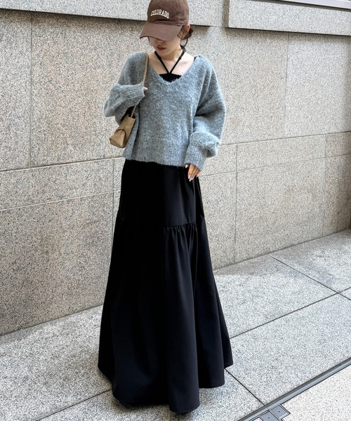 後ろ姿まで抜かりなく♪ふわっと揺れる、大人の甘さを感じるアンサンブル ■point ・バックリボン×ティアードワンピで360度着映える ・ふわシャギーニット&キャミワンピの2点セット ・それぞれ単体使いもできる着回し力◎なアイテム ■detail シャギー感が可愛いニットトップスと、ボリュームたっぷりのティアードキャミワンピースのセット。 ニットは大胆なバックオープンにリボンディテールをプラスし、後ろ姿に甘さと抜け感を演出。 フロントもボリューム袖×深Vネックで抜け感たっぷり。レイヤードにおすすめなシルエットです。 ややクロップド丈なのでワンピと合わせるとスタイルアップに! ティアードのワンピースが動くたび揺れ、女性らしさを引き立てます。 肩紐はダブルストラップ・ホルターネックで今っぽいムードに。 セット使いはもちろん、単品でも使えるから着回し力も抜群。 ■fabric ニット:ふわふわとしたシャギー素材で軽やかな着心地。 ワンピース:さらっとしたややハリのある素材で美しいドレープに。 ------------------- 透け感:なし 厚さ:普通 伸縮性:あり 裏地:なし ポケット:なし 洗濯方法:ワンピース…洗濯機OK ニット…手洗い ------------------- ※ワンピース着丈調節可能(約5cm) ■coordinate セットで甘めフェミニンにまとめるのはもちろん、ワンピースにシャツやカーデを羽織ってナチュラルに。 ニットはデニムに合わせてカジュアルダウンするのもおすすめ。 ロングシーズン着こなせる、大人女子の強い味方な1着です。 ※ご覧のモニター環境により、画像の色味と多少異なる場合がございます。 ★商品のお気に入り登録がおすすめ★ 完売カラーの再入荷通知や、ラスト1点の通知、セールの際の通知を受ける事ができます。 ブランドのお気に入り登録もご一緒にお願いします。 ブランドの最新情報はinstagram【@ranan_official】でご確認いただけます。 ※ZOZOTOWNと公式サイトでは価格が異なる場合がございます。