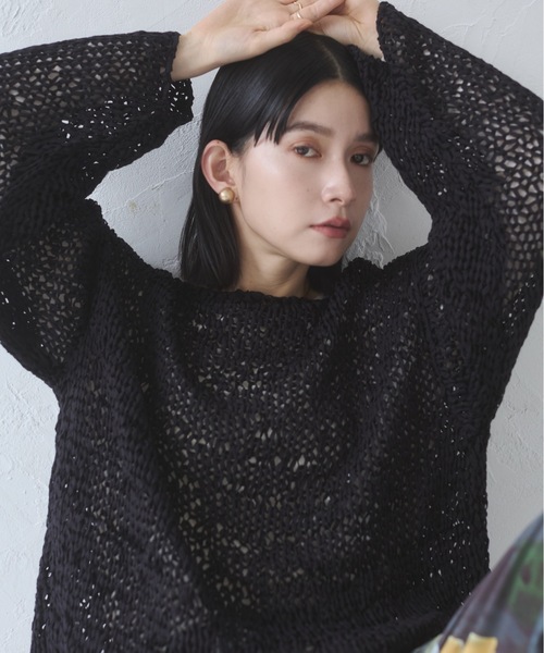 透かし編みの上品な透け感が、大人な印象を演出してくれるプルオーバー。 ■商品ポイント 広めのネックラインと、程よいゆるっと感が魅力です。シンプルなデザインで合わせるアイテムを選ばず、スタイリングの幅を広げてくれる着回し力の高いアイテム。 ■素材 平たいテープのような、太めの糸でざっくり編んでいます。独特な素材感が特徴で、柔らかくやさしい肌触りとふんわりとした風合いが◎※この製品はローゲージで編み目が粗いため、製品によって多少のサイズ差が生じる場合がございます。予めご了承ください。 ■コーディネート インナーにタンクトップやキャミソールをはさみ、程よい肌見せでヘルシーな印象に見せてくれます。デニムと合わせたカジュアルコーデや、女性らしいスカート合わせのきれいめコーデもおすすめです。 ------------------------------ 伸縮性:あり 透け感:あり 裏地:なし ------------------------------ ※お取り扱いについては、商品についている品質表示をご確認下さい。また、モニター・環境等で実際の商品と多少色が異なって表示される場合がございます。予めご了承下さい。 - 自分を甘やかす Bitterish clothes - DRESS FOR MYSELF おしゃれに悩まないストレスフリーなスタイルを福岡から提案いたします。 フレンチシックカジュアルをベーストレンドをデイリーに取り入れた気軽なウェア。 みんなの "ちょうどいい" 服づくりを目指しています。 ごきげんな自分に出会える予感。 kigocochi iicchan ne A-ne. ◆商品のお気に入り登録◆ 完売カラーの再入荷通知を受け取ることができます。ぜひご登録下さい。 ◆ブランドのお気に入り登録◆ 新商品や再入荷など、ブランドのお得情報を受け取ることができます。ぜひご登録下さい。 ※他のキャンペーンにより、期間中に価格が変動する場合があります。 ※セールは予告なく終了させていただく場合もあります。