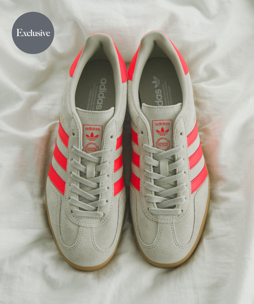 23.0サイズ, 25.0サイズはWEB限定サイズです。 ドイツ・バイエルン州に本社を構える”adidas Originals”より、国内ではURBAN RESEARCH DOORSのみ展開の限定モデルの「GAZELLE」が登場。 トレーニングシューズとして誕生し、今ではタイムレスなアイコンとして愛され続けるガゼル。 レトロな雰囲気漂うスエードアッパー×ガムラバーソールのコンビネーションは、普段使いにぴったりの一足です。 今回のモデルは、アイボリーベージュの柔らかなアッパーに、鮮やかなショッキングピンクのスリーストライプスがアクセントに。 履くだけで気分が上がるような、目を惹くデザインで シーズンを問わず活躍し、コーディネートの主役になる仕上がりです。 他にはないカラーリングで、お気に入りの一足になること間違いなしです。 【adidas / アディダス】 アディダス(adidas)はドイツのスポーツブランド。 スポーツ用品からシューズ、スポーツウェア、ファッションアイテムなど幅広いジャンルで製造から販売まで手掛けている人気ブランドです。 【2025 Autumn/Winter】【25AW】 ※使用されていますアッパー素材は、現在の染色技術では色落ちを完全に止めることができません。水に濡れた場合や摩擦、汗等が原因で衣類、車のシート、ソファー等に触れる際は十分にご注意ください。 ※靴箱破損につきましては、商品に不良が無い場合に限り出荷させていただいております。予めご了承ください。 ※その他お取り扱いに関しましては、商品に付属のアテンションタグをご覧ください。 重量(片足) : 約310g ※商品画像は、光の当たり具合やパソコンなどの閲覧環境により、実際の色味と異なって見える場合がございます。予めご了承ください。 ※商品の色味の目安は、商品単体の画像をご参照ください。 ----------------------------- 《スタッフレビュー》 試着サイズ : 23.0 / 23.5 薄手の靴下を履いて着用したところ、きつすぎず程よいゆとりを持って履くことができました。23.5ですと足長がかなり余ってしまう印象でした。 [スタッフデータ] 普段の着用サイズ : 22.5~23.0cm 足長 : 21cm 足囲 : 20.5cm 足幅 : 普通 ※履き心地には個人差がございますので、あくまでも目安としてご覧ください。 ----------------------------- 23.5232524.524