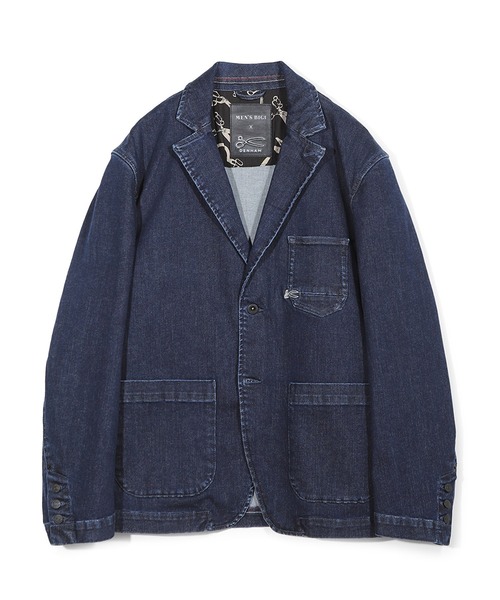 【テーラード要素をカバーオールと融合させた、カジュアルかつ上品なデンハム別注デニムジャケット】DENHAM(デンハム)の人気定番モデル「RAZOR」の生地を使用し、メンズビギがオリジナルパターンを使い別注で仕上げたデニムテーラードジャケット。色落ちしすぎない程よい製品加工が、上品でこなれた大人のカジュアル感を演出。ビジネスカジュアルやお出かけなど、デイリーユースに活躍する1着です。【デザイン/素材】FREE MOVEのストレッチデニム生地を採用し、程よい伸縮性でストレスフリーな着用感を実現。インディゴを濃いめに残し、加工感を抑えることで上品で洗練された印象に。スリムでスタイリッシュなシルエットと、テーラード要素を融合したカバーオールデザイン、各所に光るデンハムらしい遊び心のあるディテールが、大人のカジュアルスタイルにぴったりな1着です。スラックスなどに合わせたミックススタイルはもちろん、同色同素材のパンツ:M0153FP124でセットアップのスタイルもおすすめです。【シルエット】やや細身でスタイリッシュなシルエットですが、ストレッチの効いた素材で、ストレスフリーな着心地。程よく体に沿う構築的なラインで、デニムながらも上品に着こなせます。【ディテール】カバーオールのデザインをベースに、前身頃にパッチポケットを3つと、両胸に内ポケットを1つずつ配置。実用性とデザイン性を兼ねたディテールです。裏襟・裾裏に施されたオランダ国旗を表現したステッチや、左胸ポケットのDENHAMシザーモチーフ刺繍など、遊び心のあるアクセントディテールも魅力。背裏のWネームのレザーパッチは、特別感を演出します。本商品の胸ポケットは、DENHAM(デンハム)のデニムパンツの左バックポケットをデザインソースとして移植しています。DENHAMのバックポケットは、手の形の構造を重視して設計されているのが特徴で、左ポケットに手を入れた際の手の収まりを良くするため、左右非対称な形状が採用されています。胸ポケットはこの特徴的な左右非対称なデザインを踏襲し、落とし込んでいます。【セットアップアイテム】同色同素材パンツ:M0153FP124※照明・光の加減、PCやスマートフォンなどの環境により、製品と画像のカラーの見え方が異なる場合がございます。※画像はサンプルのため、色味やサイズ等の仕様が変更になる場合がございます。※サイズは弊社規定の採寸によって記載しておりますが、若干の個体差が生じる場合がございます。