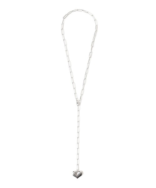 さりげなくも胸元で存在感を放つ ■デザイン すっきりと洗練された表情を見せるチェーンネックレス。ぷっくりとしたハートモチーフが揺れるデザイン。下に垂れるY字デザインは、 シャープでエレガントな首元を演出します。 ■コーディネート 胸元まである長めチェーンは、さらりと身に着けるだけでコーディネートのアクセントになります。シンプルなTシャツやニットに合わせれば、胸元にモードなアクセントをプラス。他のネックレスとの重ね付けで、さらに個性的なスタイリングも楽しめます。 ■サイズ 留める位置により調節できるので、着こなしに合わせてアレンジが可能です。 ■素材 ステンレス素材を使用したクールな質感で、様々なシーンに対応するデザインです。 【アクセサリー・小物雑貨の取り扱いについて】 ・貴金属は、体質により、かゆみやかぶれを生じる場合があります。 ・皮膚に異常を感じた場合は直ちにご使用を止め、専門医にご相談下さい。 ・家事やスポーツ、就寝時や乳幼児の世話をする時などは、身体に危害を及ぼす場合がありますので着用を避けて下さい。 ・熱伝導が高いので、高温の場所や寒冷地での着用は火傷や凍傷の原因となりますので着用を避けて下さい。 ・乳幼児が誤飲しないように、保管は十分にご注意下さい。