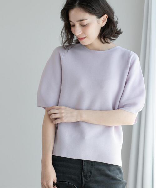 UVケア機能付きが嬉しい!さらりと着られる、ドライタッチのサマーニット【デザイン】・ほどよく身体から離れたデザインで、ゆったりと涼しく着用いただけます。・袖部分にはボリューム感を持たせ、さりげないデザインポイントに。・表面感のあるガーター編みなので、きれいめからカジュアルまで幅広い着こなしが可能です。・裾の締め付けがないデザインで楽に着られ、インでもアウトでも決まります。【素材】・さらりとしたドライタッチで、表面感のきれいなニット素材です。・取り扱いのしやすいポリエステル/アクリル混素材をガーター編みにする事で、表情のある編地に仕上げています。・マシンウォッシャブルでご自宅でのお洗濯も可能。・UVケア機能つき。※この製品は、太陽光線中の紫外線(UV)を通しにくくします。この効果は永久的ではありません。※照明の関係により、実際よりも色味が違って見える場合があります。また、パソコン・スマートフォンなどの環境により、若干製品と画像のカラーが異なる場合もございます。モデル情報:身長165cm B72 W57 H84 着用サイズ:38(M)店舗へのお問い合わせ商品番号:637-13011●製品寸法:34(SS):着丈51cm B85cm 袖丈28cm 肩幅28cm36(S):着丈53cm B89cm 袖丈29cm 肩幅30cm38(M):着丈55cm B93cm 袖丈30cm 肩幅32cm40(L):着丈57cm B97cm 袖丈31cm 肩幅34cm42(LL):着丈59cm B101cm 袖丈32cm 肩幅36cm備考: