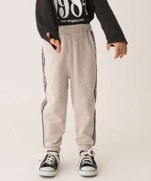【TOMODACHIパンツ】略して「ともパン」から、スポーティー&おしゃれなサイドラインテーパードパンツが登場!通園通学、公園遊び、お出かけ…どんなシーンでも大活躍間違いなしです。履きやすさと着心地にこだわったフライス素材を使用。伸縮性があり、動きやすく、汗をかいても快適な肌触りが続きます。トレンドのサイドラインが、いつものコーデをワンランクアップ。すっきりとしたテーパードシルエットで、スタイルアップ効果も期待できます。裾ゴム入りでお外遊びや活発な運動時にも、裾が邪魔にならず、安全に動き回れます。豊富なカラバリもうれしいポイント♪色違いで欲しくなっちゃう優れもの。通園通学やお外遊びにぴったりなアイテムです。【TOMODACHIパンツ】通園通学も遊ぶ時もお出かけの時もずっと一緒にいたい!履きやすさと着心地にこだわったベーシックなデザインでカラバリ豊富なフライスパンツシリーズ。※ゴム替え口付き。※モデル着用写真より商品写真が最も実物に近い色味です。※掲載画像の商品の色味は、光の照射や角度により実物と色味が異なる場合がございます。 また表示のサイズ感と実物は若干異なる場合もございますので、予めご了承ください。【透け感】透けない【生地の厚さ】普通【伸縮性】あり【ポケット】あり【アジャスター】なし