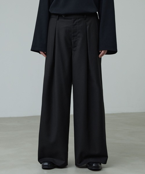 -【CALLNE】New Item Release -ワードローブに加えたい、穿きやすさと脚長効果を兼ね備えたワイドスラックス。キレイめにもカジュアルにも馴染む、CALLNEらしい洗練シルエットが魅力の一本。■design/silhouetteフロントに深めのボックスタックを施し、奥行きある立体感と脚長効果を両立。ウエスト位置をやや高めに設計することで、ワイドながらもすっきりと見えるバランスの取れたシルエットに仕上げました。後ろウエストにはゴムを配し、フィット感を高めつつ快適な穿き心地を実現。フロントは釦&YKKファスナー仕様で、イージーな着用感と本格的なデザイン性を両立しています。サイドとバックには計4つのポケットを備え、実用性も十分。ショート丈トップスとの相性も抜群な、今季注目のアイテムです。■material/color素材には、きめ細かなツイル組織と落ち着いた光沢感が魅力のT/R合繊生地を使用。柔らかなドレープと軽やかな着心地で、夏のスタイリングにぴったりな清涼感を演出します。動くたびにしなやかに揺れるシルエットが美しく、オン・オフ問わず活躍する万能素材です。カラーは、着回しやすい定番ブラックと、モードな印象を添えるチャコールグレーの2色展開。■styling/coordinateシンプルながら存在感のあるデザインで、幅広いトップスと好相性。ショート丈のシャツやベストを合わせたメリハリコーデはもちろん、ジャケットを羽織ったきれいめスタイルにもおすすめ。同素材のブルゾンとのセットアップ着用で、より統一感のあるモードスタイルが完成します。【注意事項】お手入れやお洗濯はタグなどに記載されている「取り扱い上の注意書き」や、本体内側に付属している「洗濯表示」を必ずご参照下さい。■CALLNE(カルネ)静けさを纏う洗練されたスタイルを展開。■商品のお気に入り登録完売カラーの再入荷通知や、ラスト1点、セールの通知をお知らせいたします。■ブランドお気に入り登録新商品や再入荷など、いち早くブランドの情報を受け取ることができます。