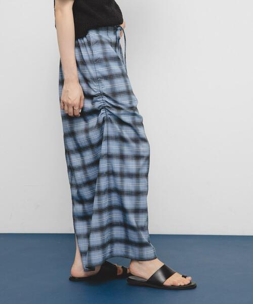 【トレンドライクな着こなしにおすすめなチェック柄スカート】程よい厚みの柔らかなチェック生地を使用したスカート。サイドにゴムを寄せたデザインになっており、きれいなドレープが生まれ、一癖あるアイテムに仕上げました。ニュアンスのあるチェックなので、今年らしいスタイリングが簡単に叶います。1枚で穿いていただくだけでなく、細身のパンツやデニムの上からレイヤードした着こなしもアクセントになっておすすめです。【2025 Autumn/Winter】【25AW】※商品画像は、光の当たり具合やパソコンなどの閲覧環境により、実際の色味と異なって見える場合がございます。予めご了承ください。※商品の色味の目安は、商品単体の画像をご参照ください。▼お気に入り登録のおすすめ▼お気に入り登録商品は、マイページにて現在の価格情報や在庫状況の確認が可能です。お買い物リストの管理に是非ご利用下さい。素材感透け感 : なし伸縮性 : なし裏地 : なし光沢 : なしポケット : ありone