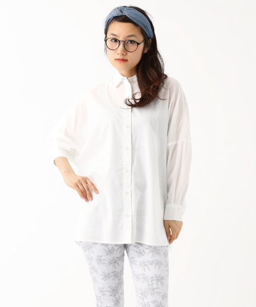 シャツにはめずらしいドルマンスリーブが魅力のビッグシャツです。透明感あふれる質感。スキニーなどのタイトなボトムスやショーパンなどのミニボトムスを合わせたコーデがおすすめ!