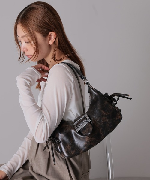 フロントのバックルがアクセントになるショルダーバッグヴィンテージライクなフェイクレザー素材を使用し、上品でこなれ感のある仕上がりです。実用性と収納力を兼ね備え、500mlペットボトルや長財布、折りたたみ傘などもしっかり収納可能。マチが広めで整理しやすく、日常使いにぴったりのサイズ感です。太めのハンドルで持ちやすいです。シンプルながら存在感のあるシルバーバックルとサイドのリボンがアクセントになり、デザイン性と機能性を両立した万能バッグ。カジュアルから大人モード、Y2K、ウエスタン、韓国、バレエコアなど幅広いスタイリングにマッチする汎用性の高さも魅力です。---POINT--- ・ヴィンテージライクなフェイクレザー使用・存在感のあるシルバーバックルがポイント・サイドのリボンがアクセント・マチが広く収納力抜群(500mlペットボトル収納可能)・実用性&整理しやすさ◎・折りたたみ傘、長財布も収納可能・太めハンドルで持ちやすい・毎日使える万能デザイン・Y2K/ウエスタン/韓国/グランジ/大人モード/バレエコアコーデにおすすめ