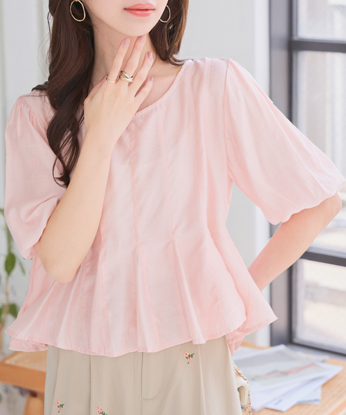 ふんわりとしたシルエットが涼しげに映える、ペプラムシアーブラウス。軽やかな透け感のある素材が、夏らしい爽やかさと華やかさを演出します。 ボリュームのある袖が二の腕をさりげなくカバーし、リラクシーながらも着映えが叶う一枚。 デイリーコーデにはもちろん、休日のお出かけにも活躍する万能ブラウスです◎ 【素材・サイズ感】 身頃は体のラインを拾いにくく、ふんわりと優しく包み込むシルエットで、さりげなく華奢見えを演出。 ペプラムの程よい広がりが気になる腰まわりをカバーしつつ、きちんと感のある印象に仕上げてくれます。 袖口には控えめなギャザーを施し、上品な立体感と動きやすさを両立。 着丈は長すぎず短すぎない絶妙なバランスで、パンツにもスカートにも合わせやすい一枚です。 【STAFFコメント】 裾フレアデザインが大人可愛いペプラムブラウス。 ショート丈なのでボトムを選ばずスタイルアップ見えも期待できます。 袖口はギャザーでふんわりパフスリーブに♡ きれいめコーデはもちろん、クルーネックなのでデニムとカジュアル合わせも◎ お洒落に体型カバーも叶う夏服です。 ※【伸縮】なし/【淡色透け】あり/【濃色透け】あり/【裏地】なし 《KOBE LETTUCE ー神戸レタスー》 プチプラレディースファッションからコスメまで、トレンドアイテムを豊富に取り揃えております。 毎シーズン発売されるインフルエンサーとのコラボ商品はSNSでも話題に。
