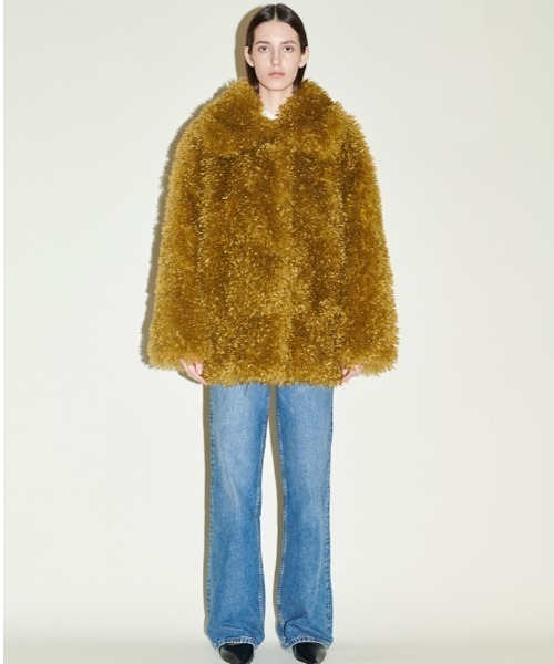 ふんわりとした毛足が魅力のエコファーコート。オーバーサイズシルエットなので、厚手のニットを着込んでもスッキリと見え、デニムなどのカジュアルスタイルにもマッチ。軽やかなブルーが冬のスタイルに柔らかな印象を与え、カーキは温かみのあるスタイリングに。 【JAKKE(ジャッキー)】 ロンドンを拠点とし、2015 年にデビューしたジャッキー。ブランドコンセプトである ”動物保護” をモットーにエコファーを中心としたポップなアイテムを提案しています。