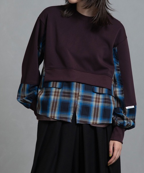 ■2025 AUTUMN WINTER collection■ スウェットとジャケットをレイヤードしたようなトップス 柄素材をコンビネーションした秋らしいアイテム 綺麗めなショート丈のスウェットと、先染めのチェックやストライプ、ピンヘッドなど柄素材を袖下と下身頃にコンビネーションしたデザインアイテム。 衿ぐり、袖口、スウェット裾のリブでメリハリをつけた奥行き感もポイント。 スレキ素材の袋布が裾から除き、ジャケットの前立てが前中心にレイヤードされたリメイク風デザインがモード感のある1枚です。 【DESIGN】 ■1枚で着やすい開きの少ないクルーネック ■スウェット×ジャケットディテール ■袖口のリブでボリューム袖を強調 ■スレキ素材の袋布が裾から除くデザイン ■身体のラインをひろわないゆとりあるサイズ感 ■左袖切替え部分にブランドピスネーム 【MATERIAL】 (表地) 柔らかくストレッチ性が高いストレッチダンボールニット素材を使用 ・保温性が高く、程よいハリ感により、シワになりにくい ・光沢感があり綺麗目な上品な表面 ・肉感があり透けにくく、シルエットに立体感がでる (別地:brn/khk) コットンキュプラのビエラの先染めチェックを使用 ・肌触りが滑らかで、微光沢がある ・静電気が起きにくく、シワになりにくい (別地:blk/nvy) 先染めのTRストレッチピンストライプ、ピンヘッド素材を使用 ・ポリウレタンと加工の力でぐっと巾を入れ込み、ストレッチ性をアップ ・上品さを残しつつ、適度なカジュアルさも持ち合わせている -------------------------- 表地: (身頃 / 袖上) ポリエステル 90% ポリウレタン 10% 別地: (袖下 / 裾) blk / nvy: ポリエステル 70% レーヨン 26% ポリウレタン 4% brn / khk: 綿 51% キュプラ 49% (リブ) blk / nvy / khk: 綿 95% ポリウレタン 5% brn: ポリエステル 96% ポリウレタン 4% -------------------------- 裏地:なし 光沢感:微光沢 透け感:なし 伸縮性:あり 生地の厚さ:中肉厚 ケア方法:ホームクリーニング(手洗い) -------------------------- ◆お取り扱いについては商品についております品質表示にてご確認下さい。 *光のあたり具合いやパソコンなどのモニター環境によって実際の色味と異なって見える場合がございます。予めご了承ください。 *撮影時はサンプルの為、若干のデザイン変更等ある場合がございます。予めご了承ください。 <INFORMATION> ◆商品のお気に入り登録お気に入り登録していただいた商品は、完売商品の再入荷通知やラスト1点の通知、またクーポン発行やタイムセールの通知もお届け!ぜひご登録してください。 ◆ショップ・ブランドのお気に入り登録新商品や再入荷、ショップ・ブランドのお得な情報をいち早お届け!ぜひご登録してください。