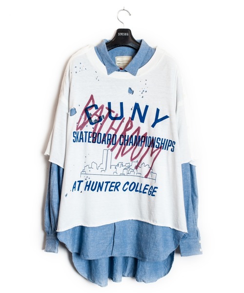 SEVESKIG一枚で「スタイリングが完成する」レイヤードフェイクシャツ。Tシャツとシャツをドッキングした大胆なデザインは、90'sスケートカルチャーやNYストリートへのオマージュを感じさせる仕上がりに。Tシャツ部分にはCUNYをモチーフにしたグラフィックプリントを施し、ペイント加工&ダメージ加工でリアルなヴィンテージ感を演出。インパクトがありながらも、どこか洗練された印象を放つ一着。主役級の存在感で、春夏のスタイリングに差をつけるマストアイテムです。026 春夏コレクションのテーマは「MEMORIES」。デザイナー自身が 15 歳、16 歳の頃に体験した記憶を具現化したものです。子供から大人へと移り変わる多感な時期、変化への恐れと同時に希望に満ち溢れていた心情をデザインやランウェイショーの演出へと落とし込みました。舞台となるのは 1995 年 -1996 年。スケートボード、ヒップホップ、ミクスチャーロック、ストリートカルチャーが絶頂を迎えたエネルギッシュな時代。ランウェイショーでは、その熱気とクリエイティブな空気を鮮やかに蘇らせています。象徴するアイテムがアロハシャツです。出身地の大分県にある、ガレリア竹町商店街で夜に友達と缶蹴りをした記憶や、自作したランプを使ってスケボーで海に飛び込んだエピソード、仲間たちと別府公園で滑った風景をイラストでプリントしました。SEVESKIG・・・“ありそうでないもの”をコンセプトとしたレザーを中心としたコレクションはテーラリングに裏付けされたパターンからなる構築的なデザインと、VINTAGEに見られる質感を融合させ一人の職人が全行程を行う“丸縫いレザー”という前代未聞の商品を展開する。大事なのは MADE IN JAPAN であること。日本の革職人の確かな技術に、デザイン・加工という遊び心を加える。将来自分たちが作った服が、買ってくれたお客様の子供、さらにはその孫たちにも着てもらえることが目標。大手アパレルメーカー経験後、東コレブランド、国内ドメスティックブランドのディレクション兼MDを担当したディレクター。同じく大手アパレルメーカーから国内ドメスティックブランド、フリーランスで数々のブランドのデザインで活躍したデザイナー。大手アパレル在籍、ロンドンのSavile Rowで修行の経験を持つパタンナーの3人がスタートさせる。