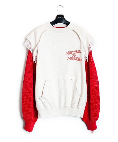 SEVESKIG 破壊と再構築をテーマに、SEVESKIGが再定義するスウェットトップスが登場。一見ベーシックなスウェットに、異素材の“違和感”を重ね合わせた、圧倒的な存在感の1枚。袖にはヴィヴィッドな赤のクロシェ編みニットを、肩まわりには繊細なレースを大胆にドッキング。柔らかく着心地の良いスウェットボディとのミスマッチが、反骨的かつファッション前衛的なムードを演出します。胸元には《SABOTAGE OF MEMORIES》のシンボリックな刺繍ロゴを配置。ユーズドライクなカンガルーポケットや、切りっぱなしのディテールが手仕事の温度感を感じさせます。ユニセックス対応で、ストリート、グランジ、Y2K、ジェンダーレスとあらゆるジャンルをクロスオーバー。LOOKでは奇抜なヘッドアクセとスタイリングされていましたが、単品でも圧倒的な主役感を放ちます。 026 春夏コレクションのテーマは「MEMORIES」。 デザイナー自身が 15 歳、16 歳の頃に体験した記憶を具現化したものです。 子供から大人へと移り変わる多感な時期、変化への恐れと同時に希望に満ち溢れていた心情をデザインやランウェイショーの演出へと落とし込みました。 舞台となるのは 1995 年 -1996 年。スケートボード、ヒップホップ、ミクスチャーロック、ストリートカルチャーが絶頂を迎えたエネルギッシュな時代。 ランウェイショーでは、その熱気とクリエイティブな空気を鮮やかに蘇らせています。 象徴するアイテムがアロハシャツです。 出身地の大分県にある、ガレリア竹町商店街で夜に友達と缶蹴りをした記憶や、自作したランプを使ってスケボーで海に飛び込んだエピソード、仲間たちと別府公園で滑った風景をイラストでプリントしました。 SEVESKIG・・・“ありそうでないもの”をコンセプトとしたレザーを中心としたコレクションはテーラリングに裏付けされたパターンからなる構築的なデザインと、VINTAGEに見られる質感を融合させ一人の職人が全行程を行う“丸縫いレザー”という前代未聞の商品を展開する。 大事なのは MADE IN JAPAN であること。 日本の革職人の確かな技術に、デザイン・加工という遊び心を加える。 将来自分たちが作った服が、買ってくれたお客様の子供、さらにはその孫たちにも着てもらえることが目標。 大手アパレルメーカー経験後、東コレブランド、国内ドメスティックブランドのディレクション兼MDを担当したディレクター。同じく大手アパレルメーカーから国内ドメスティックブランド、フリーランスで数々のブランドのデザインで活躍したデザイナー。大手アパレル在籍、ロンドンのSavile Rowで修行の経験を持つパタンナーの3人がスタートさせる。