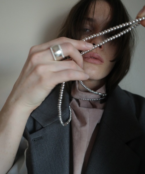 2025 Autumn&WInter Collection ボールチェーンロングネックレス 二重にして着用したり、首に巻きつけてチョーカーのようにアレンジしたりと、様々なスタイリングが楽しめるロングサイズのボールチェーンネックレス。 素材は真鍮にシルバー925コーティングを施しており、軽量なので負担なく着用いただけます。ボールパーツはしっかりとしたチェーンに通し、留め具のデザインにもこだわりました。 CLANEロゴ入りのパーツがさりげないアクセントです。 ※照明の関係により、実際よりも色味が違って見える場合がございます。 またパソコン・スマートフォンなどの環境により、若干製品と画像のカラーが異なる場合もございますので、予めご了承ください。 商品の色味は、商品拡大画像をご参照下さい。