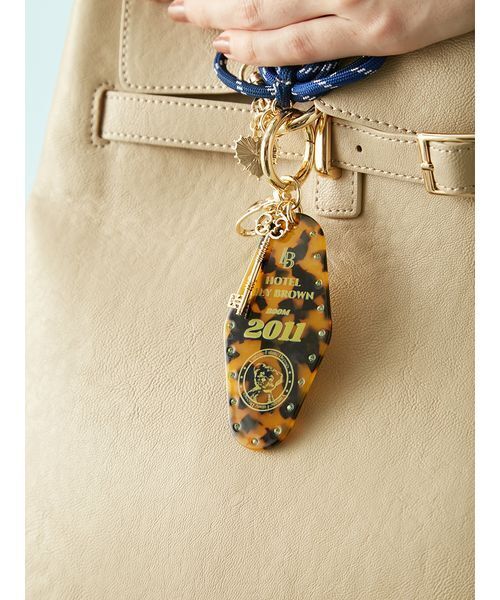 【“LILY BROWN HOTEL”の物語を感じるレトロキーチャーム】 【Design/Styling】 架空のホテル「LILY BROWN HOTEL」をイメージしたレトロキーチャーム。LilyBearの肖像にブランドコンセプトを添えた、特別なグラフィックが魅力です。ルームナンバー“2011”は「LILY BROWN」が誕生した年へのオマージュ。ナスカンとカラビナが付いており、さまざまなバッグに簡単に取り付け可能。世界観を楽しみながら、コーディネートのアクセントとして活躍してくれます。 ※照明の関係により、実際よりも色味が違って見える場合があります。 またパソコン・スマートフォンなどの環境により、若干製品と画像のカラーが異なる場合もございます。予めご了承ください。 商品の色味は、商品単品画像をご参照下さい。 ※商品画像はサンプルのため、色味やサイズ等の仕様に変更がある場合がございますので、予めご了承ください。
