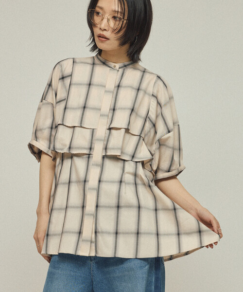 Firsthand/ファーストハンド オンブレーチェック フレアヨークシャツ / 5分袖チェックシャツ