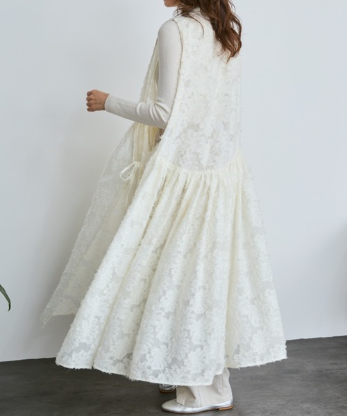 大人気の「サイドリボンジレワンピース」にフェザーライクなジャガード生地が仲間入り!レイヤードワンピースとして、シンプルなコーディネートにプラスするといつもと違った雰囲気に。■point・襟ぐりはVネックとクルーネックの前後2WAYで着用可能・サイドはリボンで身幅の調節が可能、シルエットをを気にせず、ゆったりした着心地・特徴のあるジャガード生地なので、シンプルなコーディネートを華やかにアップデート■styling・パンツと合わせてイージーパンツや素材の表面感にこだわりのあるパンツとの合わせもおすすめです。・シルエットの異なるスカートとレイヤードしてサイドリボンは調整できるので、広がりのあるシルエットのボトムともコーディネートが可能です。■fabricポリエステル100%透け感のある軽やかな生地■size総丈:124cm肩幅:35cmサイドリボン:44cm……………………透け感 : あり厚さ:薄手伸縮性:なし裏地:なしポケット:なしお手入れ方法手洗い 〇お取り扱い上のご注意:ご自宅でお洗濯いただけます。濃色は色移りの可能性がありますので、単独洗いをおすすめします。お洗濯のあとは放置せず水気を含んだ状態で形を整えて干してください。細いリボンのパーツを使用しています。お取り扱いにご注意ください。詳しくは付属の「お取り扱い上のご注意」をご確認ください。……………………※ご注意※・屋外の光や照明の当たり具合で、実際の商品の色味とカラー別画像の色味に若干の違いが発生する場合がございます。・詳細画像と併せてご確認の上、ご注文いただきますようお願い致します。【 Libra Cue 】“包み込むような気持ちよさを” 快適で豊かな生活を送りたいそんな暮らしの”きっかけ”となるデイリーウェアをご提案します【 商品のお気に入り登録 】完売カラーの再入荷通知やラスト1点の通知プライスダウンの通知も受け取ることができます。【 ブランドのお気に入り登録 】新商品や再入荷など、ブランドの情報をいち早くお知らせします。※ご注文いただいた予約商品のお届け時期確認は、注文履歴ページより行えます。