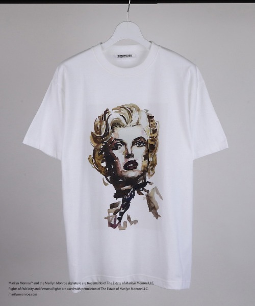 18糸リング紡績糸の度詰め天竺(6.6oz)を使用した半袖Tシャツ。 マリリンモンローのポートレイトを画家 政田武史が描きおろしたオリジナリティー溢れるアイテム。 (Marilyn Monroe Official)