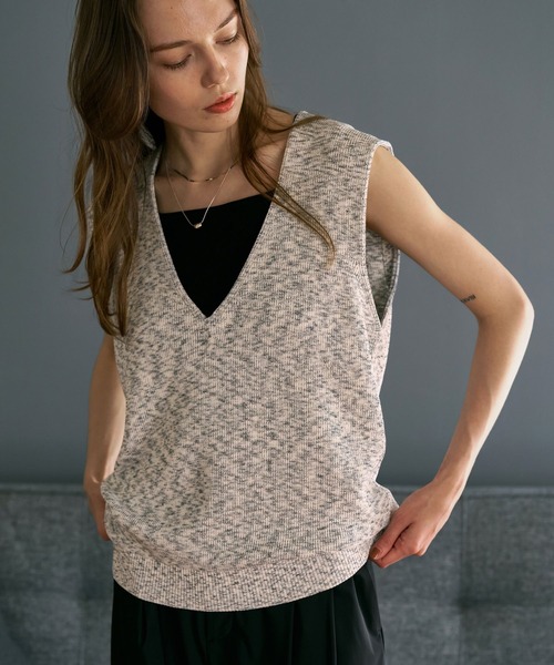 *Detail*深めのVネックがデコルテを美しく見せ、抜け感を演出する畦編みニット。やや広めの肩幅設計で、気になりがちな二の腕や背中周りをさりげなくカバー。ゆるっとしたシルエットで、リラックス感と女性らしさを両立した一枚です。*Coordinate*タンクトップやキャミソールをレイヤードすれば、こなれた抜け感スタイルに。デニムと合わせてカジュアルに、スラックスで合わせれば大人モードな印象に。ゆるシルエットを活かして、ボトムはすっきりまとめるとバランス良く決まります。※商品画像は、光の当たり具合やパソコンなどの閲覧環境により、実際の色味と異なって見える場合がございます。あらかじめご了承ください。【商品のお気に入り登録】完売カラーの再入荷通知や、ラスト1点の通知、プライスダウンしたセール通知も受け取ることができます。【ブランドのお気に入り登録】新作や再入荷等、いち早くブランドのお得な情報を受け取ることができます。