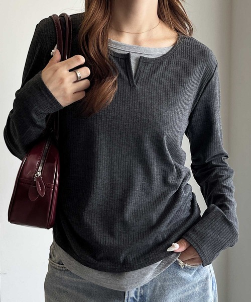今季イチオシの主役級トップストレンド感のあるレイヤードカットソーが登場!〇配色ディテールとギャザーがアクセントに〇抜け感の出るレイヤード風トップス〇スタイルアップも叶うコンパクトなシルエット!■デザインレイヤードスタイルが、これ一枚で完成!サイドに施したギャザーデザインがこなれ感を演出♪カットソーを2枚重ねているような印象的なデザインで、着るだけでおしゃれ上級者に。ほどよいフィット感とコンパクトな丈感で細見え効果も抜群◎キーネック仕様なので首元や、デコルテをキレイに見せてくれます秋冬のレイヤードコーデにぴったりの主役級アイテムです。■素材さらっとした肌触りで伸縮性のあるリブ素材。……………………透け感:なし厚さ:薄め伸縮性:あり裏地:なし洗濯方法:洗濯機……………………■コーディネートワイドなデニム合わせなど、カジュアルダウンした着こなしがおすすめサロペットやジャケットなどのインナーにもぴったり。●ウエストゴム入り--------------------------------------------------------------※サイズ寸法は実際の寸法と多少の誤差がある場合が ございます。※ご覧いただいているPC/WEB環境や撮影環境により、 多少色味が異なって見える場合がございます。【お買い物をよりお楽しみいただく為に】▼商品のお気に入り登録をおすすめします♪『♡をクリック!』完売カラーの再入荷やラスト1点の追加、セールの際の通知を受ける事ができます。ブランドのお気に入り登録もご一緒にお願い致します。--------------------------------------------------------------