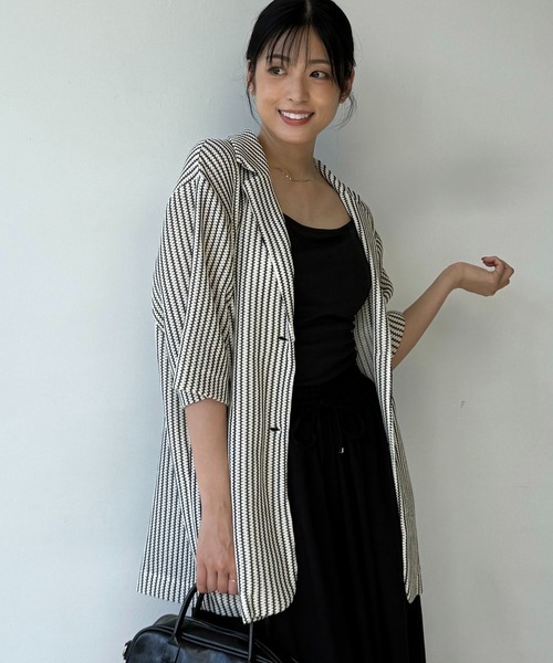 カラーによって異なるデザインが魅力♪半袖テーラードジャケットシアージャガード、シワ加工サテン、ストライプなど、コーデのアクセントになるデザインのテーラードジャケットが登場。きちんと感のある大人っぽアイテムだから、普段のお出かけにはもちろんセミフォーマルとしても重宝します◎ゆったりと着用いただけるオーバーサイズで、パンツスタイルはもちろんきれいめスカートとの相性もぴったりです♪▼商品について・画像の商品はサンプルとなります。実際の商品と色味、仕様、加工、サイズ、素材等が若干異なる場合がございます。・サイト上のカラー名と、お届け商品に記載されているカラー名が異なる場合がございます。・商品の色味は、撮影場所や光のあたり具合などにより色味が違って見える場合がございます 。また、お客様のお使いのPCのモニター環境などにより色味が違って見える場合がございます。予めご了承の上ご注文下さい。▼お取り扱いについて・着用またはお取り扱いの際は、アテンションタグや洗濯ネームを必ずご確認ください。▼返品・キャンセルについて・着用、洗濯後の返品は致しかねます。・商品到着後、着用前に商品を確認して頂きますようお願い致します。♪商品のお気に入り登録お気に入り登録した商品は、ラスト1点になった時、完売商品の再入荷、セールになった時にお知らせします。♪ブランドのお気に入り登録新商品の発売、再入荷、セール情報など、ブランドのお得な情報を受け取ることができます。