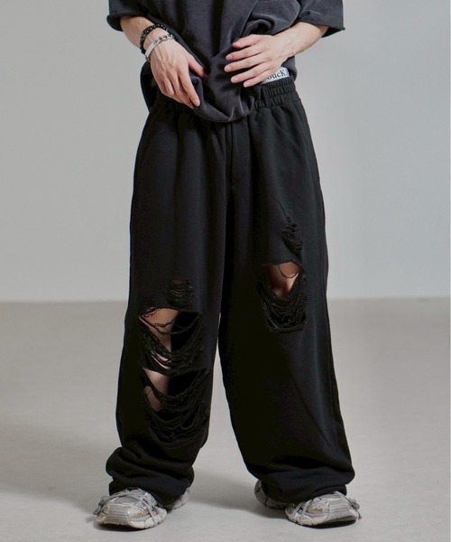 【Chikashitsu +】full length crash sweat pants / 【チカシツプラス】フルレングスクラッシュスウェットパンツ <着用動画あり>