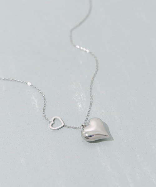【心ときめくプックリハート】●大小のハートモチーフ●デコルテを愛らしく演出●肌に優しく錆びにくいサージカルステンレス素材ぷっくりとした立体的なハートと、華奢なラインのオープンハートが連なったネックレス。異なる表情のハートモチーフがデコルテラインに遊び心をプラスします。腐食に強く錆びにくいサージカルステンレスを採用した、金属アレルギーにも対応したアクセサリーです。【2025 Autumn/Winter】【25AW】【サージカルステンレスとは・・】・通常のステンレス材よりも、より腐食に強く錆びにくい。・医療器具にも使用されており、金属アレルギーに対応した素材。・お風呂などの水に触れるシーンで付けっぱなしにしても、錆びたり変色したりしにくい。※アレルギーの原因はさまざまです。すべての方に起きないことをお約束するものではありませんので、予めご了承くださいませ。また、症状が出た場合は直ちに使用をお控えください。※アレルギー体質の方や体調が低下している方など、かぶれることがありますので十分にご注意ください。※サージカルステンレスは、腐食に強く錆びにくい特徴がございますが、製品状態を永久保証するものではございません。使用状況によって劣化は異なりますので、ご了承ください。※その他お取り扱いに関しましては、商品に付属のアテンションタグをご覧ください。総重量 : 約3g※商品画像は、光の当たり具合やパソコンなどの閲覧環境により、実際の色味と異なって見える場合がございます。予めご了承ください。※商品の色味の目安は、商品単体の画像をご参照ください。▼お気に入り登録のおすすめ▼お気に入り登録商品は、マイページにて現在の価格情報や在庫状況の確認が可能です。お買い物リストの管理に是非ご利用ください。-