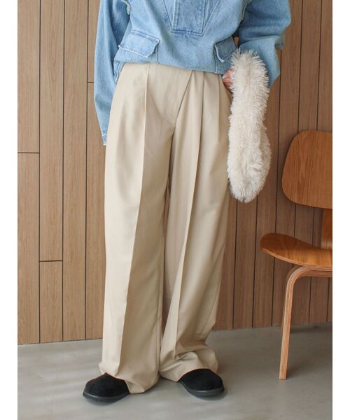 ウエスト部分をアシメデザインに落とし込んだタックパンツ ■デザイン シルエットも少しカーブデザインでトレンド感ありシルエットに。 腰回りを包み込み足のシルエットもカバーしてくれる優秀パンツです。 ■生地感 落ち感のあるポリエステル混の素材を仕様。 動きもありシルエットをきれいに見せてくれます。 裏地付きで安心感のある1本。 ■サイズ感 S.Mサイズで身長に合わせてサイズも選んでいただける展開。 低身長の方はSサイズでフラットシューズで合わせていただける丈感に。 ■スタイリング カジュアルなカットソーとの合わせでデイリーに合わせたい1本。 足元はスニーカーでメンズライクにまとめるのもマッチします。 ・・・・・・・・・・・・・・・・・・・・・・ 透け感:なし 裏地:あり 伸縮性:なし 光沢感:なし 生地の厚さ:普通 ・・・・・・・・・・・・・・・・・・・・・・ ※商品画像はサンプルのため、色味やサイズ、素材の混率等の仕様に 変更がある場合がございます。予めご了承ください。 ※生地寄り画像を正規の商品の色味に近づけております。 ■商品のお気に入り登録 再入荷通知やラスト1点、お得なプライスダウンの情報も受け取ることができます。 ぜひご登録ください◎