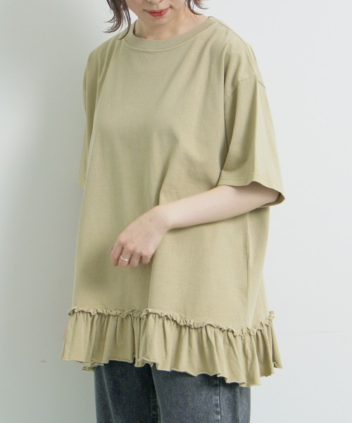 裾フリルが愛らしいアクセントをプラスするチュニックTシャツ。 ヴィンテージ感を漂わせるピグメント加工が、スタイリングにこなれ感を演出。 バックネックのロゴプリントもさりげないポイント◎ ゆったりシルエットと長めのチュニック丈で、リラックスして着用することができるアイテムです。 ※商品画像は、撮影環境やお客様のご利用のPC・スマートフォンのモニター環境などにより実物と色味に差異がある場合がございます。 ★《お気に入り登録》でお得な情報をGET★ ① 商品ページ内のハートマークをクリック! ② 以下通知が受け取れます! 「再入荷」「ラスト1点」「特別セール」etc.. \ブランド、ショップのお気に入りも是非!/