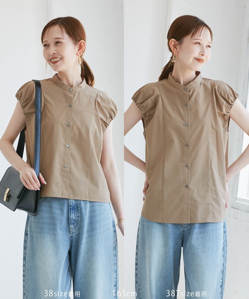 サスティナブル素材を採用。着丈が選べるシリーズのブラウス。【素材感】・接触冷感素材。・UVケア&UVカット機能付き。※ブラック(01)キャメル(25):UVカット(紫外線遮蔽率90%以上)※オフホワイト(15):UVケア(紫外線遮蔽率80%以上)【デザイン・シルエット】・ROPE' PICNICお馴染みの“着丈が選べるシリーズ”。・バンドカラーの前開きシャツ。・バルーンスリーブが特徴。・ショート丈はフラットヘムで、ミディアム丈はラウンドヘム。【カラー】・ブラック、オフホワイト、キャメルのベーシックカラー3色展開。【スタイリングポイント】・フレアスカート、アイラインスカートなどに裾インで、すっきりとしたきれいめコーデに。・ショート丈はハイライズボトム合わせも一押し。・トロピカルなプリントスカートを合わせると夏らしいスタイルが完成。-----------------------------裏地:なし光沢感:なし透け感:オフホワイト(15)はあり、その他カラーはなし伸縮性:なし生地の厚さ:やや薄手季節:夏-----------------------------※撮影時の光、お使いのモニター環境によって色の見え方が違う場合がございます。【モデル着用サイズ】身長:165cm 着用サイズ:38
