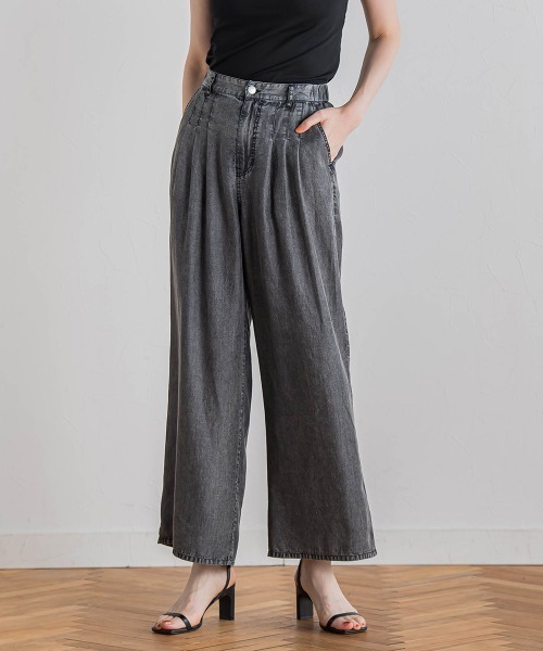 【デザインポイント・着こなしポイント】パウダリーなタッチとシルクのような自然な光沢感があり、柔らかくしなやかな再生繊維(セルロース)を使用したデニムパンツ。加工によりヴィンテージライクな表情を出し、くたっと落ち感のあるタッチが涼しく快適な穿き心地です。リラックス感あるワイドシルエットながらも、タック入りのウエスト周りがすっきりと上品な印象を与えられる1枚です。----------------------------------------------------------------洗濯方法家庭洗濯:液温は30℃を限度とし、洗濯機で非常に弱い洗濯ができる。自然乾燥:日蔭の吊り干しがよい。アイロン:底面温度120℃を限度としてアイロン仕上げができる。ドライクリーニング:石油系溶剤による弱いドライクリーニングができる。----------------------------------------------------------------※画像の商品はサンプルとなりますので実際の商品と仕様、加工、サイズが若干異なる場合がございます。※お客様のモニター環境により実際のお色と多少異なる場合がございます。※撮影状況や光の当たり具合により、色合いが異なって見える場合がございます。※商品タグに記載されたサイズはヌードサイズです。実際の商品のサイズは商品情報の実寸をご確認ください。▼商品のお気に入り登録ハートマークをクリックし、お好きなカラーを選んでお気に入りに登録完売カラーの再入荷通知や、ラスト1点の通知、セールの通知も受け取ることができます。▼ブランドのお気に入り登録新商品や再入荷等、いち早くブランドのお得な情報を受け取ることができます。