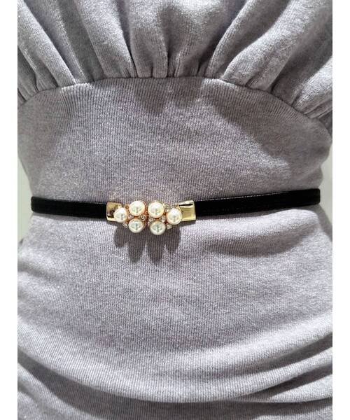 エレガントなパールビジューをあしらったバックルがポイントのゴムベルト。 フィット感のあるゴムベルトはウエストマークにも大活躍のおすすめアイテムです。 シンプルなスタイリングに合わせてアクセントに♪ 金具を引っかけるだけの簡単着脱で使い勝手が良いのも嬉しいポイントです♪ 【おすすめコーデアイテム】 >>シャギーニットワンピース