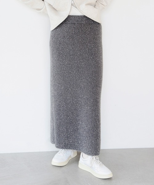 ワンランク上のおしゃれコーディネートに!■デザインラメ入りで華やかな印象のニットスカート。着こなしのポイントになること間違いなしのアイテムです。バックにはスリットが入っており、足さばきも快適です。■コーディネート同素材のカーディガン(93-15-0842-286)とセットアップでの着用も可能。きれいめな雰囲気ですが、スウェットなどカジュアルアイテムとも相性抜群です。■サイズややタイトなストレートシルエット。ウエストはゴム仕様、また伸縮性のある生地感のため、フィットしつつも締め付けが少なく快適な穿き心地です。■素材ラメが入ったニット素材を使用。程よく地厚の生地は身体のラインを拾いすぎません。◆同素材のカーディガンがございます。品番:93-15-0842-286【GREY】【BLACK】Model:H162 B78 W61 H90 Size:ONE SIZE【LIGHT BLUE】Model:H167 B81 W61 H87 Size:ONE SIZE【スタッフレビュー】スタッフ:natsuki身長:166cm / 普段サイズ:M / 着用サイズ:ONE SIZE骨格診断:ウェーブ / パーソナルカラー:イエベ サイズ感: ややタイトな女性らしいシルエット。素材感: ラメが散りばめられたトレンド感のある素材。ポイント: 華やかなデザインがコーデの主役に◎。※こちらの商品はニット素材の特性上、スカート丈に若干の個体差がございます。予めご了承ください。※光の当たり具合やパソコンなどの閲覧環境によって、実際の色味と異なって見える場合がございます。予めご了承ください。※商品の色味は商品単体で撮影した画像をご参照ください。◆お気に入り登録のおすすめ◆気になる商品には「お気に入り」登録がおすすめです!登録していただくと再入荷のお知らせやセール通知など、商品の最新情報が届きます。またマイページでいつでも確認が可能になります。お得な情報が届くこともありますので、是非ご活用ください。