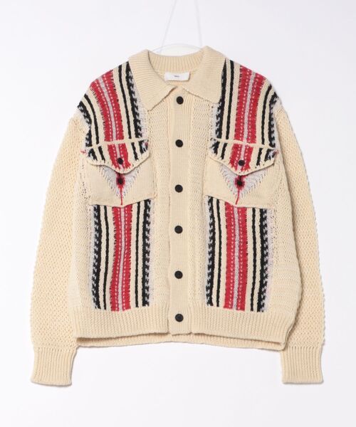 ニット素材のボタンダウンジャケット。 編み地の素敵な一着で、羽織でもインナーでも使いやすいアイテムです。